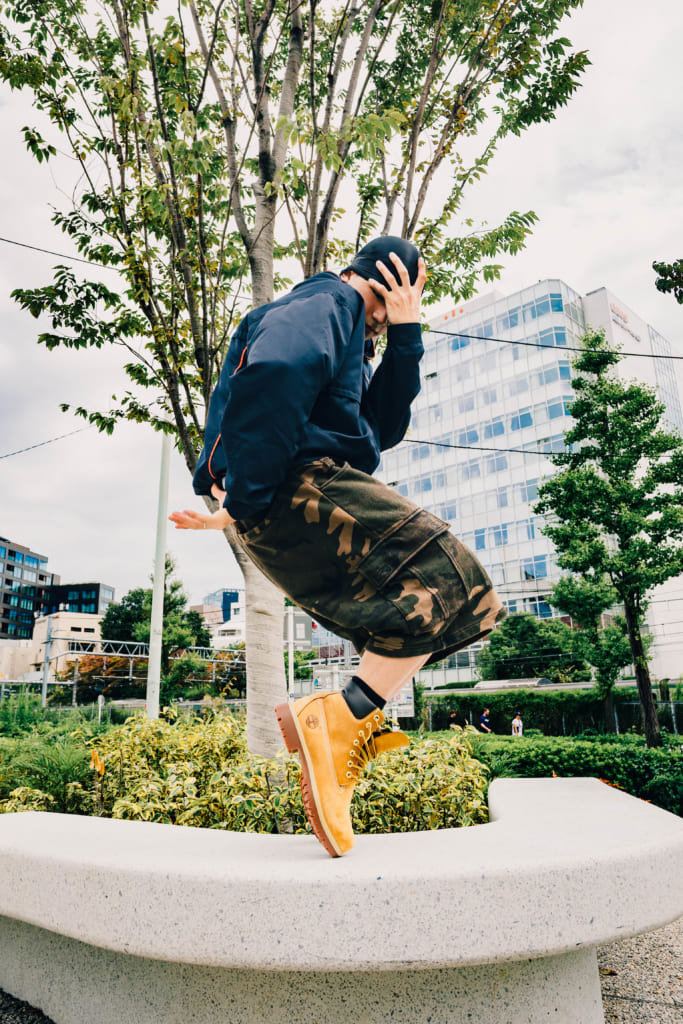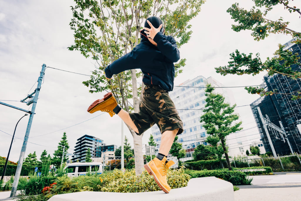 R:とにかく「めっちゃ宙に浮きたい」ですね。多分みんなTimberlandのブーツは重いという印象が強いと思うので、軽く飛んだらびっくりすると思うんですよ。なので逆にめっちゃ宙に浮いてやろうかなって思います。「こいつ、この靴重いのにこんなに飛べんの?」みたいな感じで驚かせたいですし、でも実は見た目以上に軽いということも見せつけられたらなと思います。
