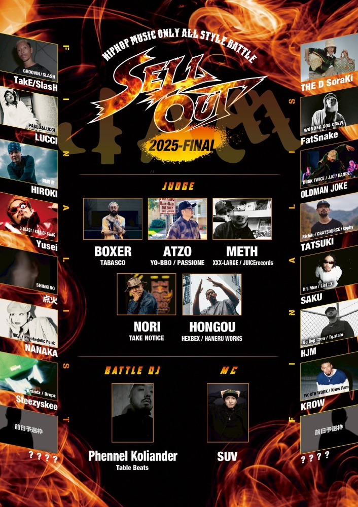 数々ある日本のダンスバトルの中で、各々のスタイルをレペゼンし、現在のシーンにおいて誰もが認める異ジャンルのトップダンサー達が交わるイベントは国内でSELLOUTのみであろう。
