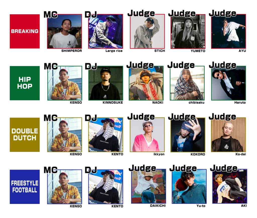 競技:ブレイキン(男子・女子)/ ダブルダッチ / ヒップホップ / フリースタイルフットボール