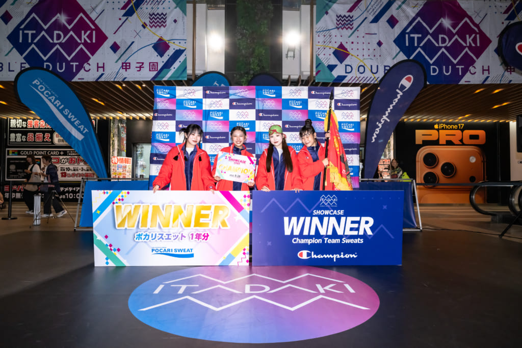 そして迎えた今年の ITADAKI。4人の息の合ったパフォーマンスは、仲の良さがそのまま演技に表れ、各々のスキルの高さも存分に発揮。高校3年生3人にとって、これが最後のITADAKIとなる集大成のステージで、観客を魅了し審査員からも高評価を受け、ついに悲願の優勝を勝ち取った。