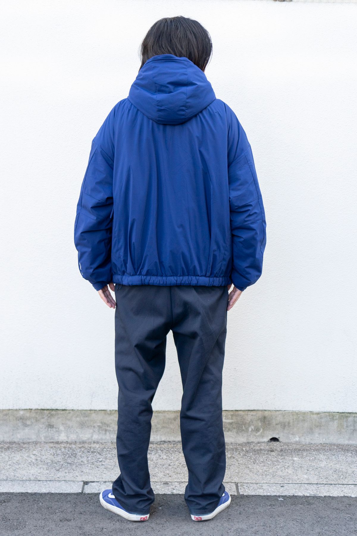 アウターを着て、パンツをはく。シンプルなワンツーコーデこそ、細かい気配りが優越に直結する。ややゆるっとしたシルエット、ブルー系のカラーバランス。ともに満点だ。
