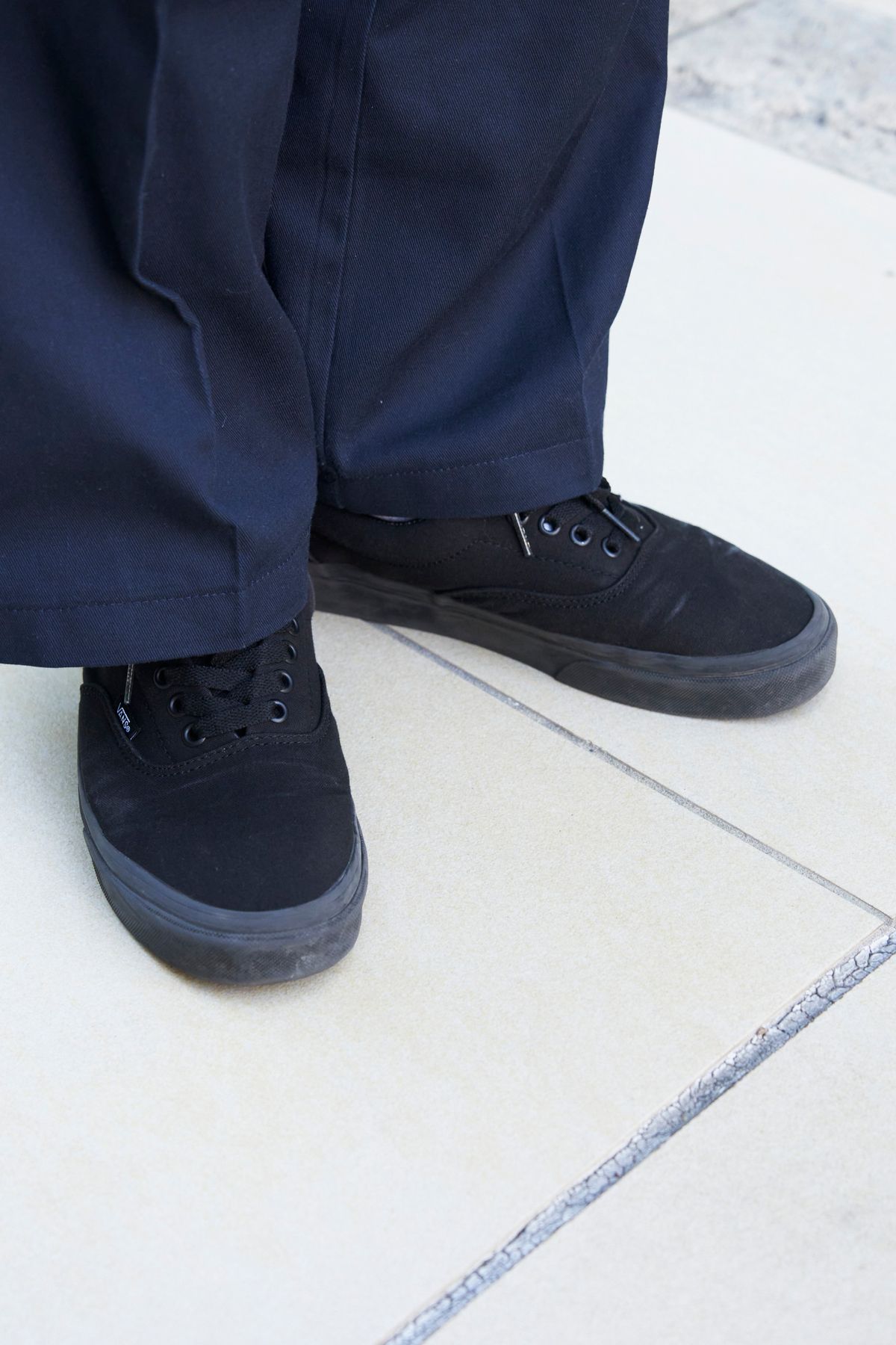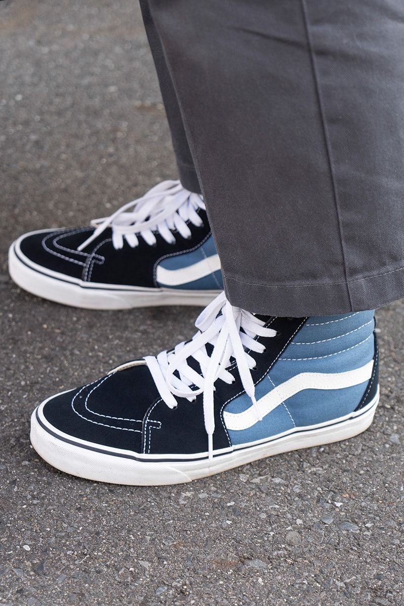 過去何度もその組み合わせを披露していただいたように、かの野村訓一さんも常々そのマリアージュに太鼓判を押す。ディッキーズ+ヴァンズで作る大人カジュアル。街角の巧者たちは、シンプルなコーディネイトでその効能を実感していた模様。