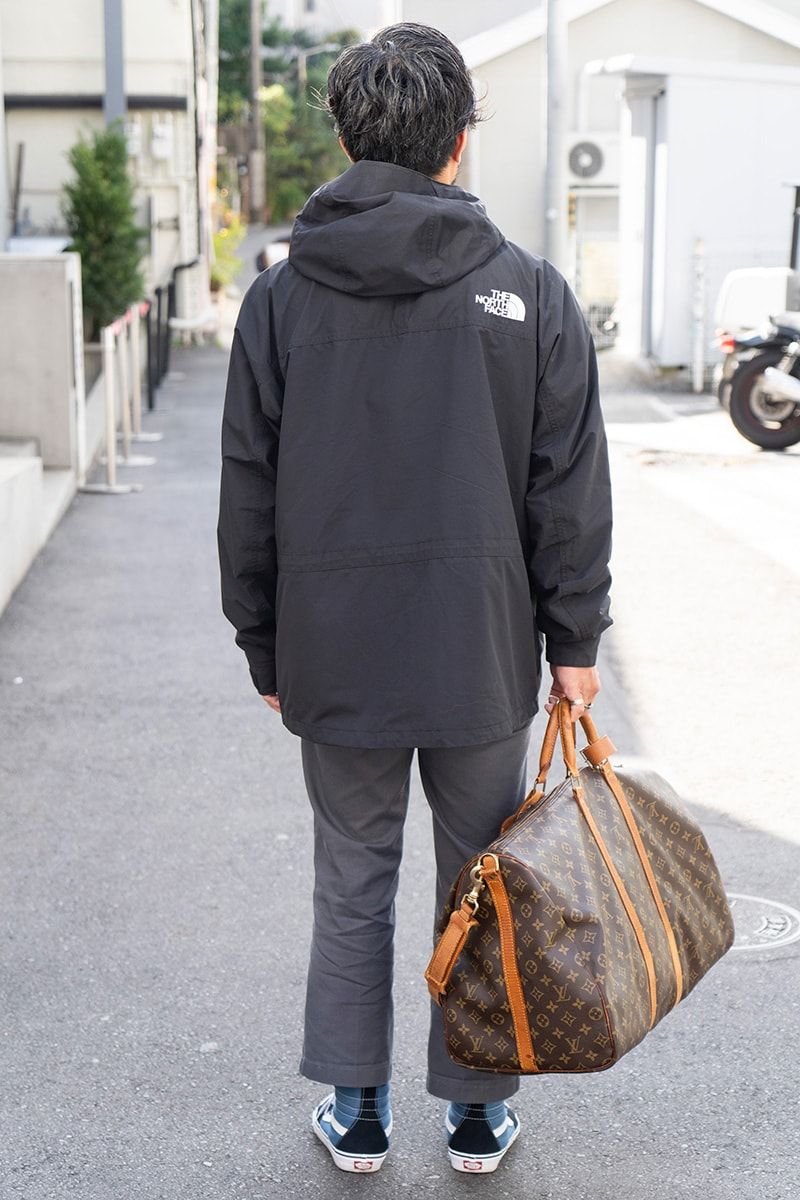 ディッキーズのワークパンツ、ヴァンズのスケートハイ、そしてルイ・ヴィトンのバッグ。“ノース”のジャケットの脇を飾る役者たちは、各界のアイコンが揃い踏みだ。