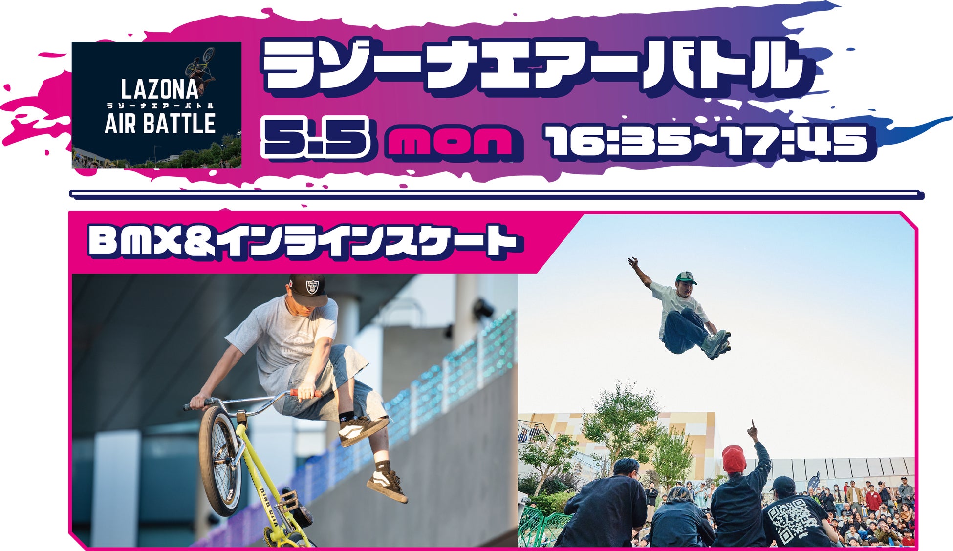 BMX & インラインスケートによる空中戦の祭典「ラゾーナエアーバトル」を開催!スペシャルゲストには、日本BMX界の若きエースの中村輪夢選手がジャッジとして登場!