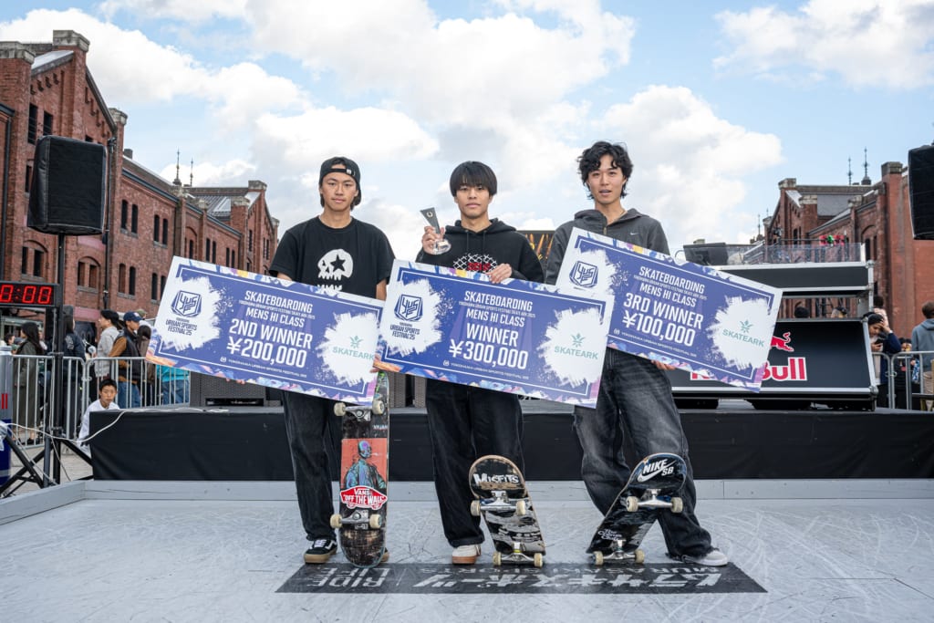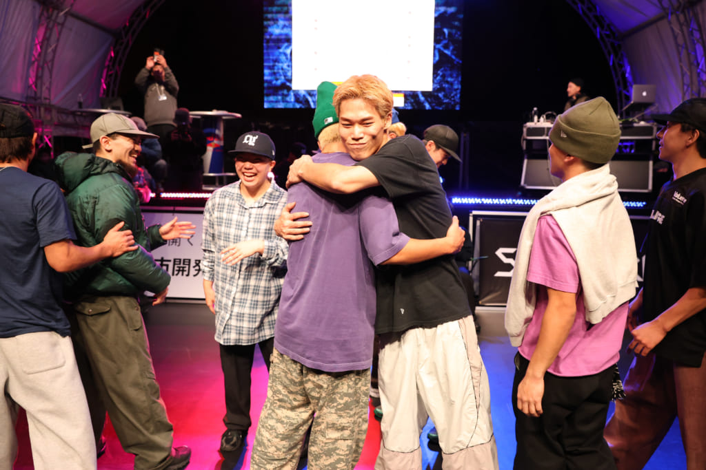 一方、MENS HIクラスでは佐々木音憧と池 慧野巨そして根附海龍というX Gamesやワールドスケートなどの国際大会で優勝経験やメダル獲得を持つライダーによるマッチアップ。世界最高レベルの戦いが繰り広げられる中、根附が「ヒールフリップバックサイドテールスライドビッグスピンアウト」など世界大会でも披露するようなトリックを決め、見事優勝を収めた。