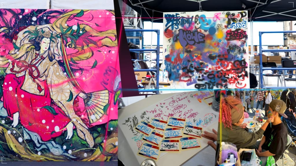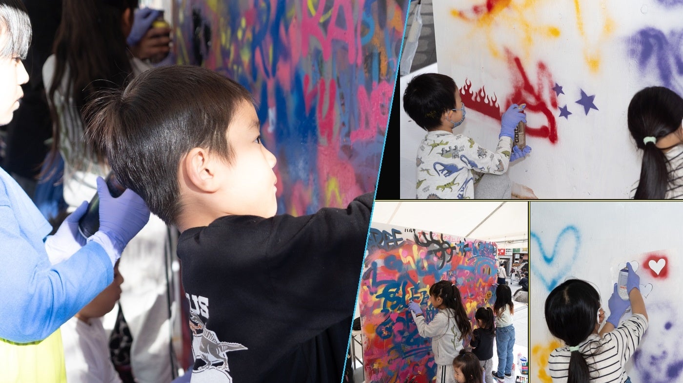 会場では、ストリートアートの魅力を感じられる多彩なアートコンテンツを展開。アーティストによる作品制作を楽しめる企画に加え、来場者自身が参加できる体験型コンテンツも用意し、子どもから大人まで自由に表現を楽しめる空間が広がる。