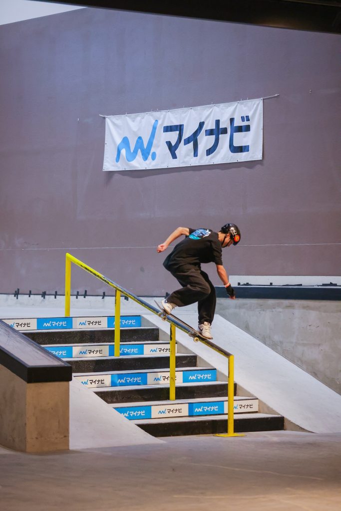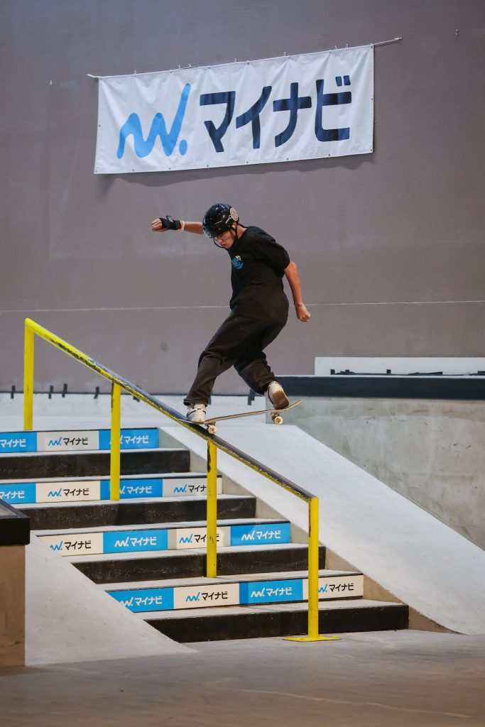 「バックサイド270フロントサイドブラントスライド」を決めて91.96ptをマーク。この時点で佐々木音憧の優勝が決まった。
