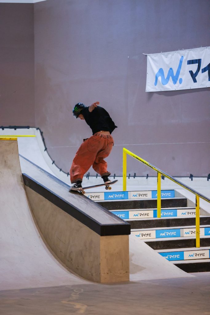 トライ前に「1発で決めるんで」と宣言して挑んだ「ハードフリップバックサイドテールスライド」を宣言通りに、しかも完璧に成功させ94.68ptと佐々木音憧に続いてこの日2番目に高いスコアをマークした。