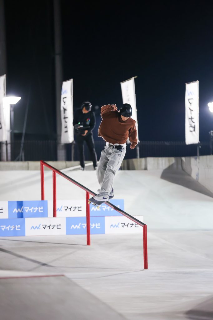 宮本はメインのハンドレールで「バックサイドテールスライドビッグスピンフリップアウト」を狙ったが惜しくもアウトが合わず、6位で終えた。