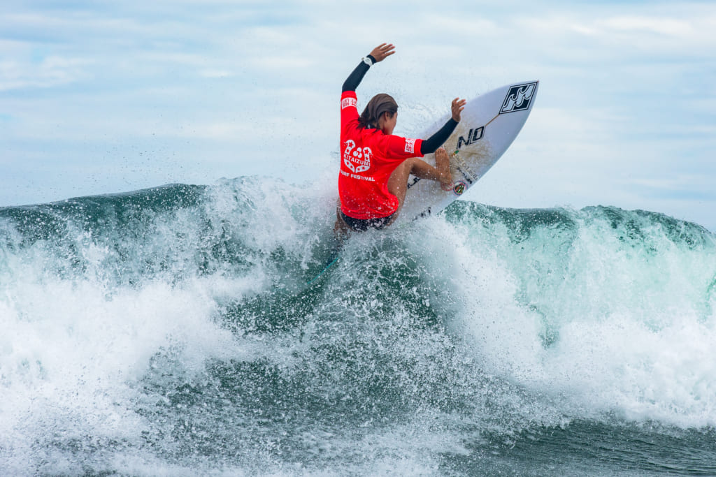 これまでのヒート同様、序盤から積極的に動きを見せた川瀬心那は、2本目で4.83ポイントをスコア。そこからも勢いを止めることなく波を掴み続け、5本目では自身のトップスコアとなる5.77ポイントをマークし、終始リードを守り抜いた。